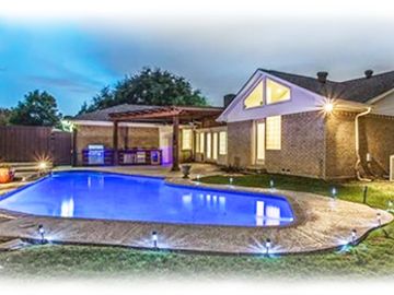Discover this custom contemporary home featuring Austin Stone, perched on an elevated lot. All 12 grades in the highly rated Richardson School District are less than a mile away.